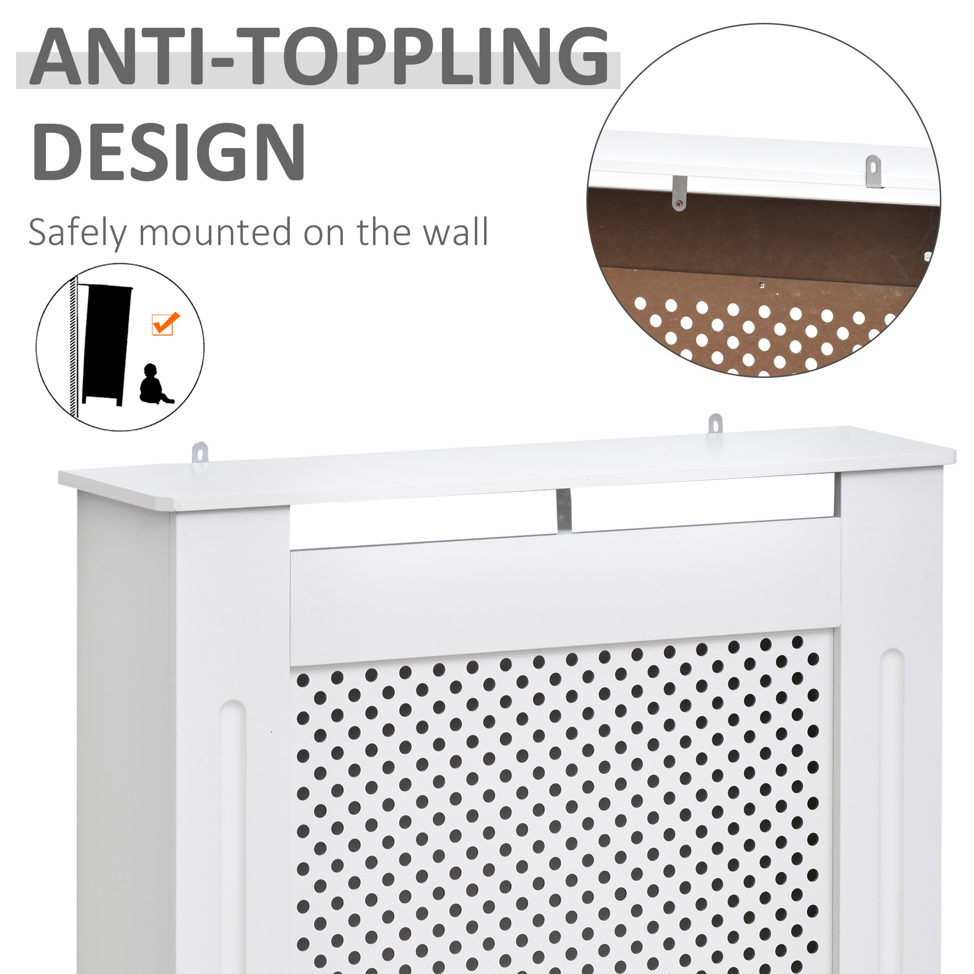 - ANTI-TIPPING DESIGN: Safely equipped with anti-tipping hardware, which help the white heater cover can be mounted on the wall sturdy