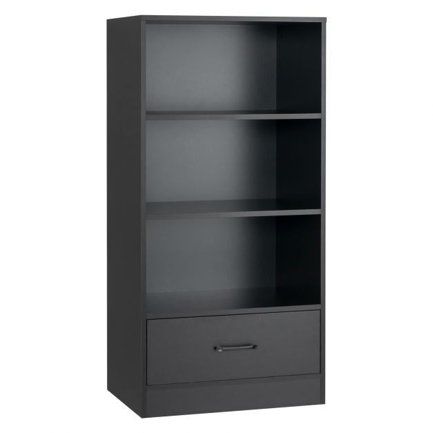 Partition Design and Ample Storage Space: This practical storage bookshelf has four large layers, enough to store all your daily necessities. The wooden bookcase is designed with partitions: 3 open shelves and one large drawer. You can store your personal items in the drawer, while keeping frequently used items, books or decorations on the shelf.