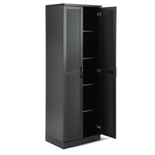 Stable Freestanding Tall Cupboard: The wooden storage cupboard stands 177cm tall but features superior stability thanks to the anti-toppling device, with which you can anchor the cabinet to the wall in against of wobbling or tipping over. Thus, the floor standing cabinet is a much safer choice for families with kids and pets.