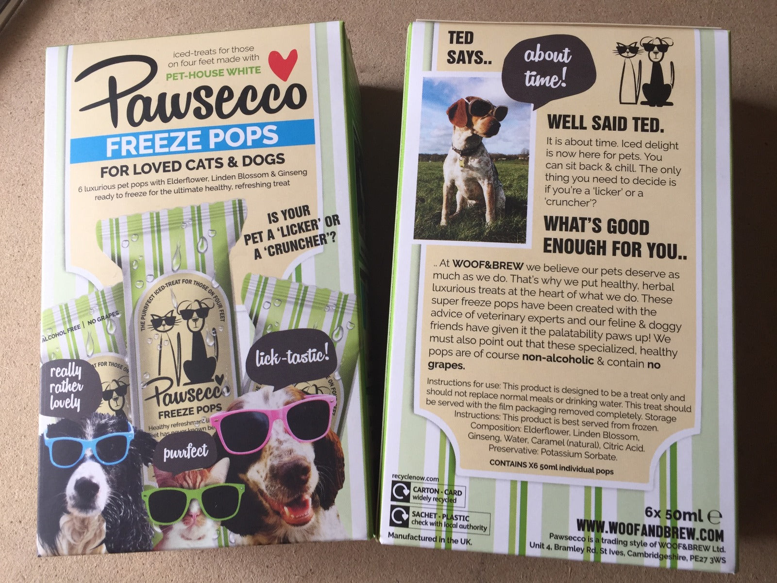 These luxurious, ready-to-freeze, ‘posh-pops’ ice lollies for dogs have been created by Woof and Brew with the advice of veterinary experts and are of course non-alcoholic and contain no grapes. Offering refreshment for your dog or cat this Summer. Each box contains 6 luxurious pet pops made with Elderflower, Linden Blossom and Ginseng for the ultimate healthy, refreshing treat which can be frozen at home.