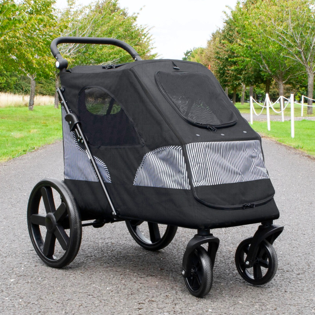 ProudPet XL Pet Strollers; ideal for elderly, rescued or injured pet dogs and cats. With large mesh panels for ventilation, big rear wheels and a removable front panel for easy access, these buggies are perfect for cats and dogs.