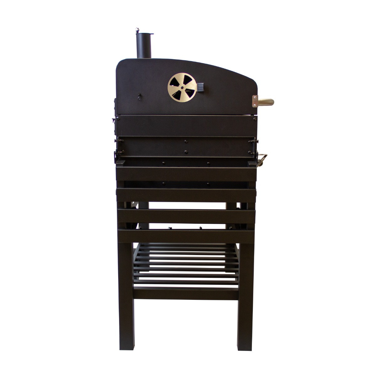 A large front access door allows you to refill or stir charcoal as required to create an even cooking temperature.