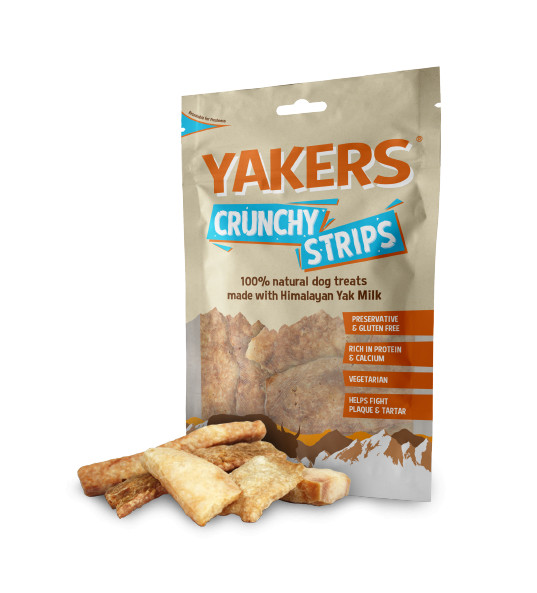 The Yakers Crunchy Strips Dog Treats provide a more substantial treat, packed with nutrition and great taste. A treat that dogs love to get their teeth into, Crunchy Strips are great for helping to fight plaque and tartar while you can rest assured that -like all Yakers products- it’s a treat that’s free from preservatives and gluten and is 100% natural!