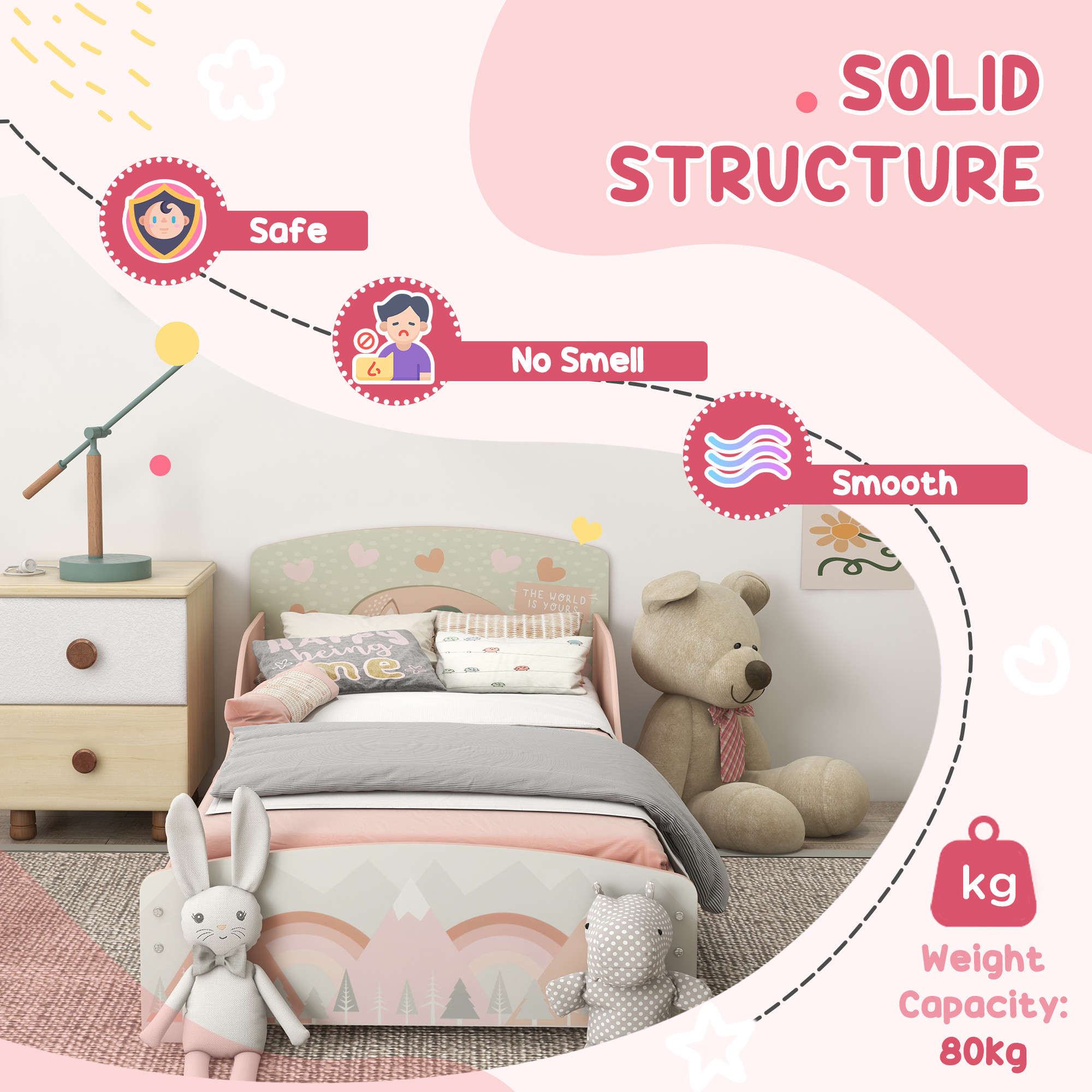ZONEKIZ Toddler Bed Frame, Kids Dressing Table with Mirror and Stool, Cute Animal Design Kids Bedroom Furniture Set for Ages 3-6
