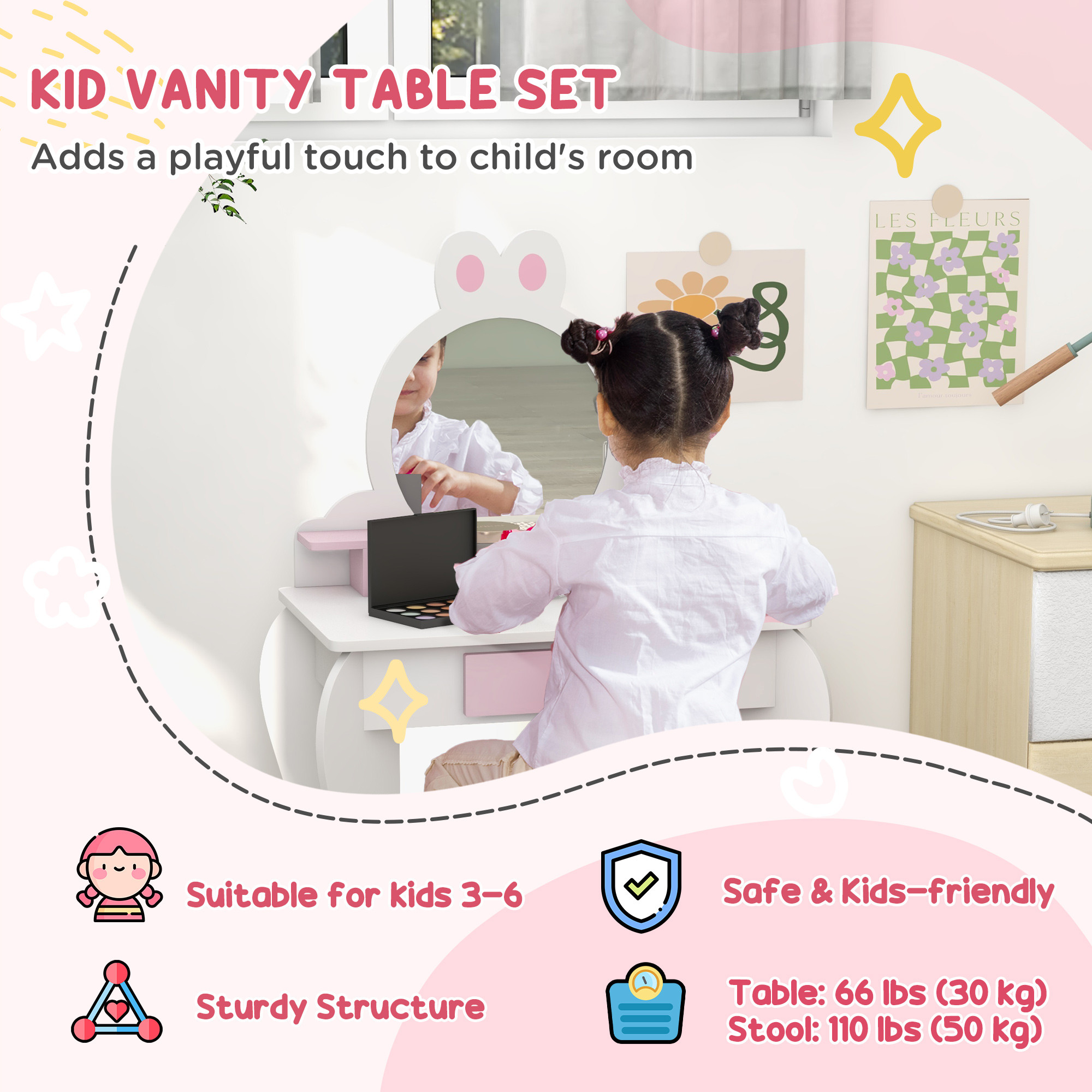 - Fit to kids: It's easy to get on and off this kids bed, whilst the side rails prevent them from falling off when sleeping. They'll use this kids dressing table to get ready in the mornings, style their hair, play with makeup and more. The drawer keeps everything neat and organised.