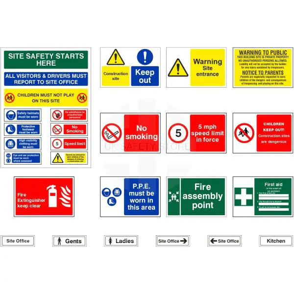 A (medium sized) 20 Construction Site Sign Pack - containing relevant safety signs for a medium sized construction project. This pack offers better value than buying these signs separately. Manufactured by us here in the UK this packs signs are for the most part in a landscape format compared to some of our other construction sign packs. Contains the following signs: