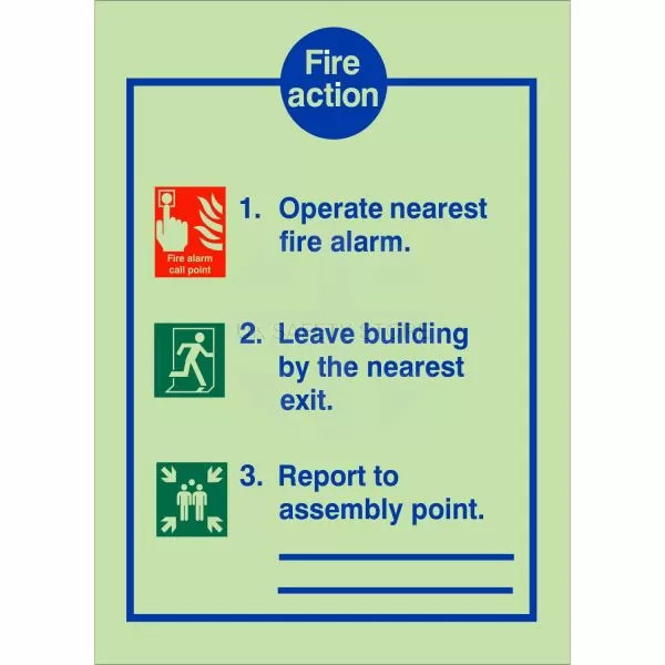 3 Point Fire Action Notice Sign - Complete With Lines Where You Can Enter Assembly Point Location