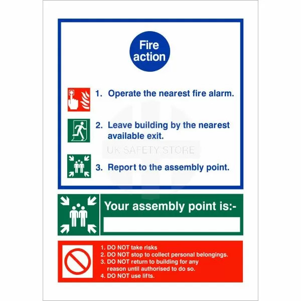 3 Point Fire Action Notice Sign - with space to write Assembly Point Location