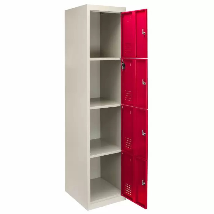 With space & security for up to four people, these metal lockers can be used separately or to fill out a locker changing room – just buy two or more units to create your own office, gym or school locker room system.