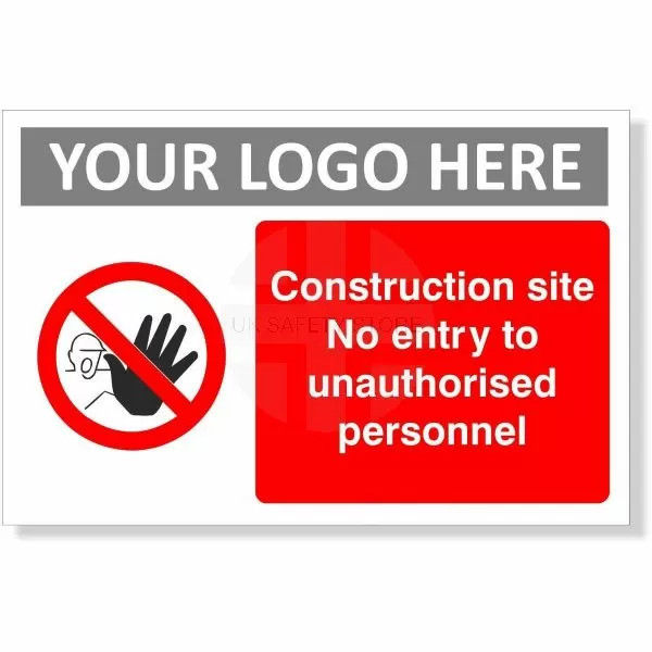 - This constuction site sign has white text on a red background and reads "Construction site No entry to unauthorised personnel"