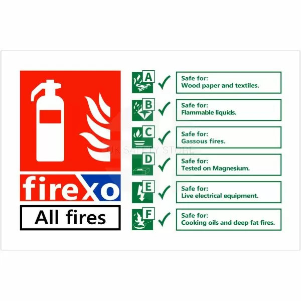 - A Fire XO Extinguisher ID sign to meet the UK Fire regulation guidelines.