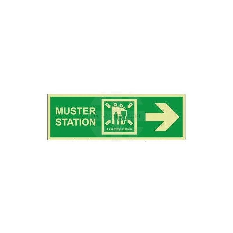 Muster Station Assembly Station Arrow Right Sign - Self Adhesive