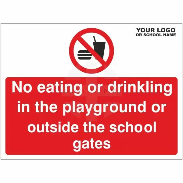 - Acts as a visual reminder not to eat or drink in the playground or outside the school gates.