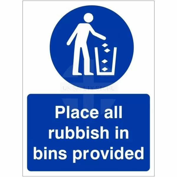 Place All Rubbish In Bins Provided Sign
