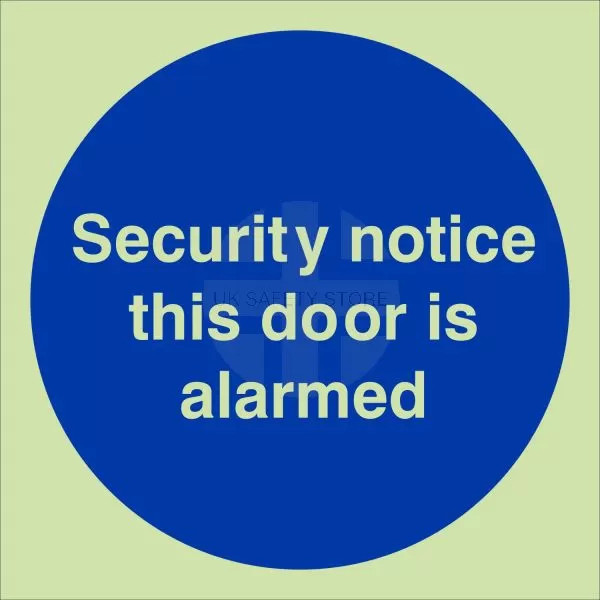 Security Notice This Door Is Alarmed Glow In Dark Sign - 100W x 100H - Self Adhesive