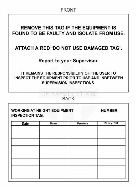 - This tag is used to convey the height hazards of scaffolding and manage thorough inspection.