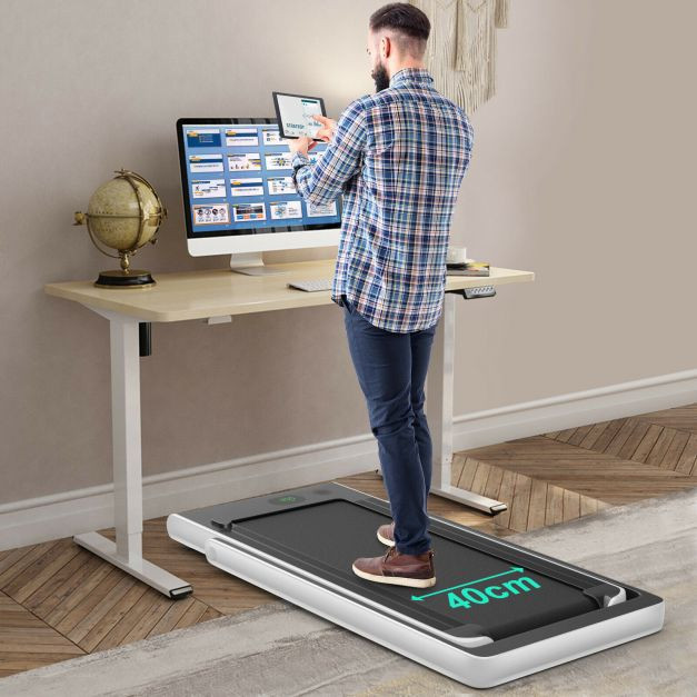 Innovative 2-in-1 Folding Treadmill. Compared to ordinary treadmills, our 2-in-1 treadmill has 2 modes to help meet your different sporting needs. When the handrail is folded, it can be used as an under-desk treadmill with a top speed of 4kph. When the handrail is raised, the running speed is increased to a top speed of 12kph allowing you to reach your fitness goal.