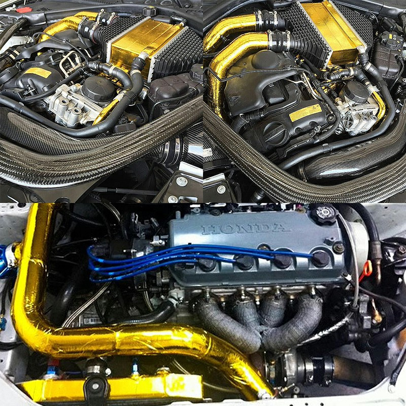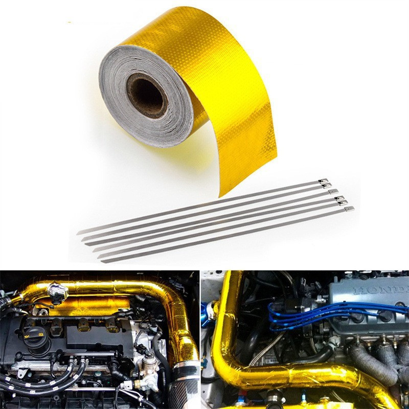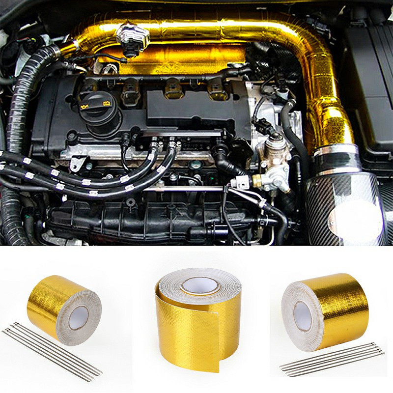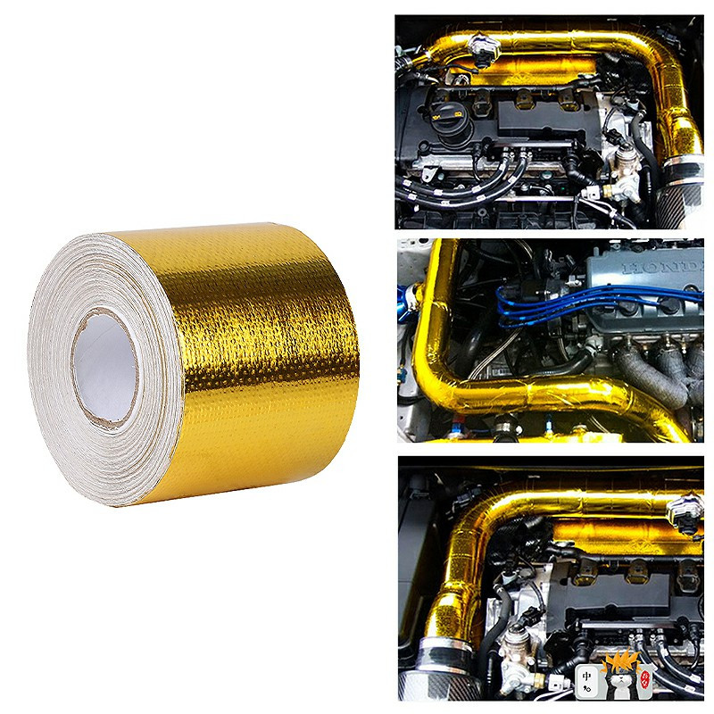 10m x 5cm Adhesive Reflective Wrap Gold Heat Shield Wrap Tape for Car Engine.