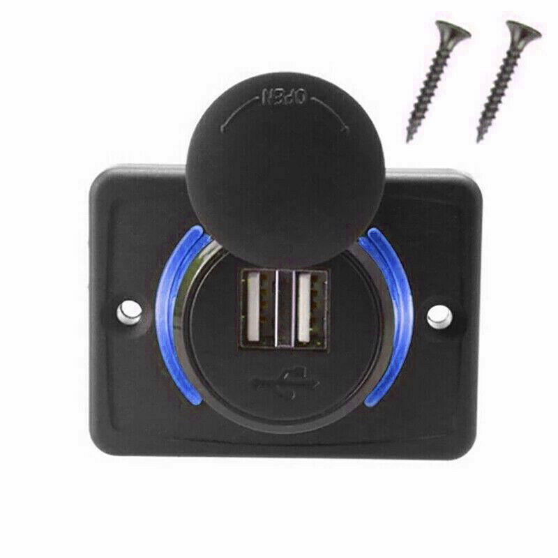 12V 3.1A Dual USB Car Charger 2 Port Adapter Power Socket Charging Panel Mount - Blue.