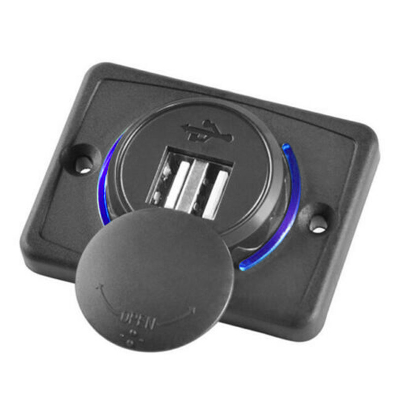 12V 3.1A Dual USB Car Charger 2 Port Adapter Power Socket Charging Panel Mount- Blue