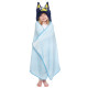 Baby blue hooded towel with Bluey's smiley face on the hood including cosy hand pockets