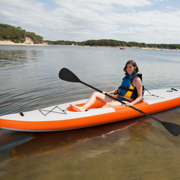 Quick Inflation and Deflation Valve: The sit on kayak with a spring-loaded valve provides extra rigidity and stability and can be deflated and rolled into a compact size for easy travel or storage. It is easy to assemble and can be launched at any time for your adventure. Note: Please put the cockpit inside the kayak before inflation.
