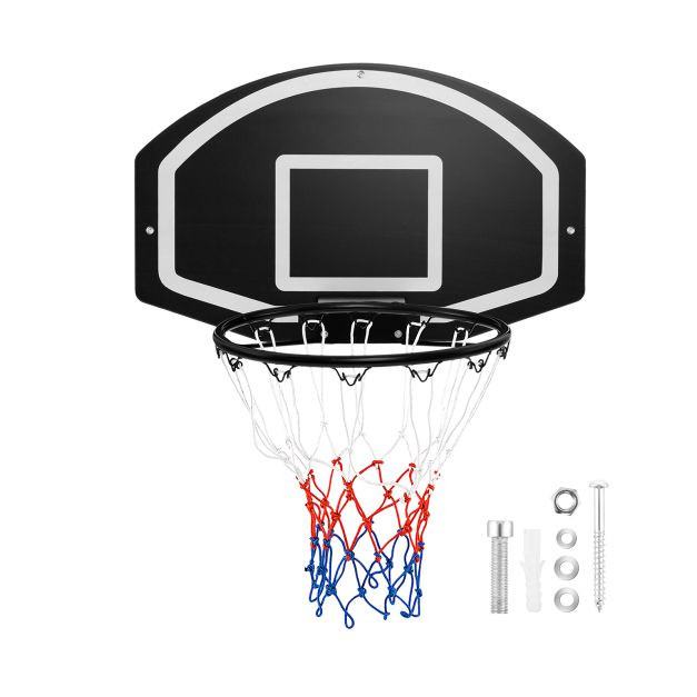 This wall-mount basketball hoop set is here to bring the joy of basketball straight to your own home! The 72 cm x 45.5 cm backboard offers ample space for aiming and practising shooting techniques. Besides, made of high-quality PE material and with 2 cm thickness, the backboard enjoys excellent shatter resistance. The robust metal rim with 2 reinforced bars ensures superior stability and support for intense dunks and shots. Along with the set, you'll receive a durable polyester net, as well as 3 expansion screws for easy installation. With the wall-mounted basketball set, you turn any space into your own basketball zone, whether indoors or outdoors. What's more, this basketball hoop toy is a fun game for of kids, teens or adults.