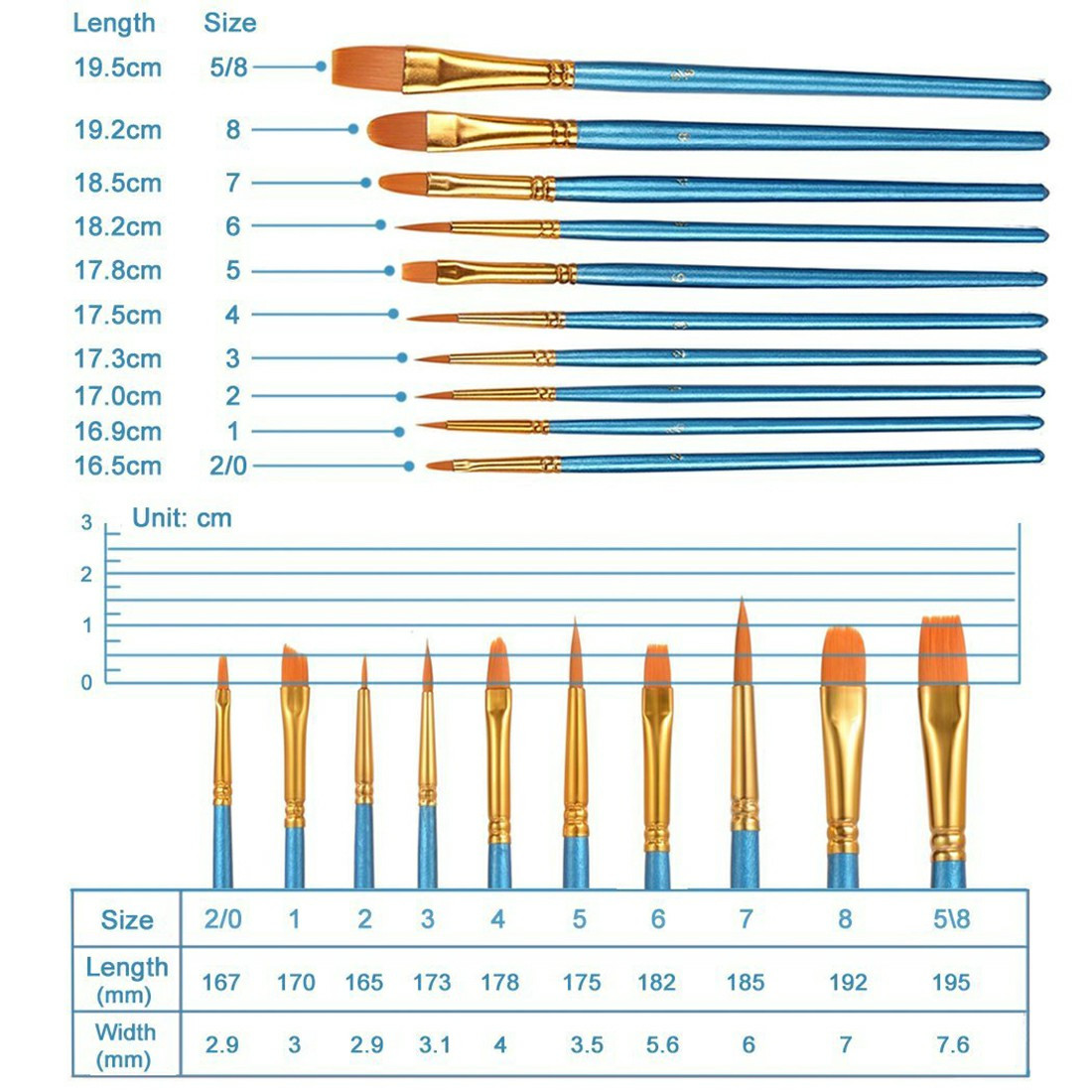 10pcs Face Painting Brushes Round Flat Tip Artist Paint Drawing Brush Glitter Art Set