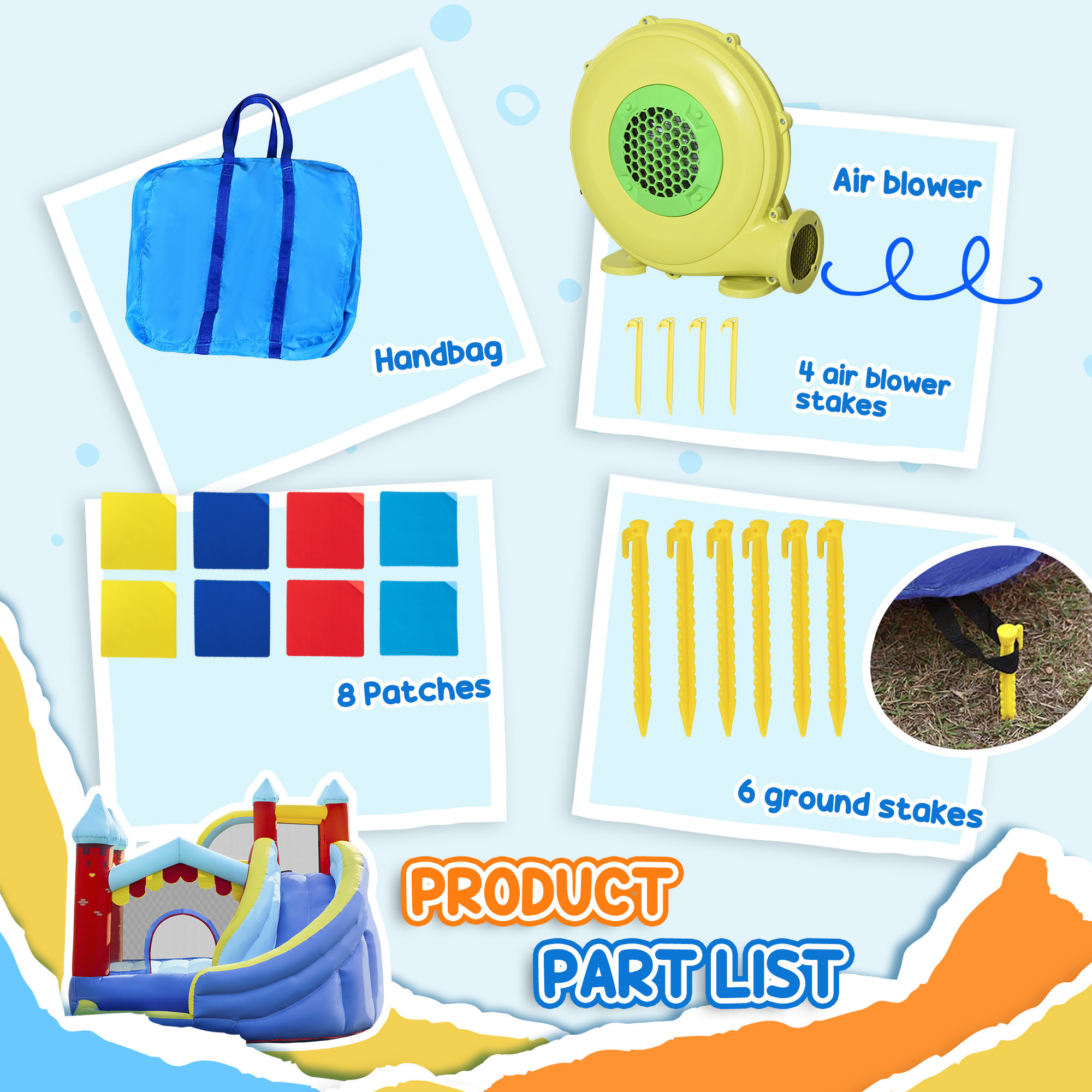 Outsunny Kids Bouncy Castle, with Slide, Pool, Trampoline, Climbing Wall, Blower